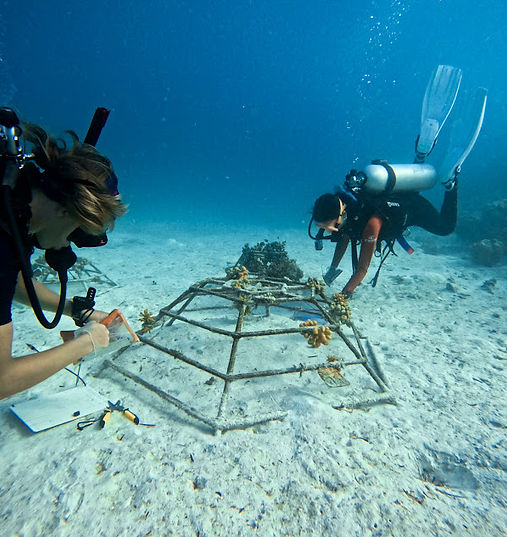We use ocean based nurseries to grow our coral fragments. which have already been broken off the parent colonies by boat anchors, storms and human interaction and then attach them to metal frames. We then place these frames in a location ideal for growth and regularly monitor and maintain them. All coral fragments used on our coral frames would have certainly died if left on the sand.